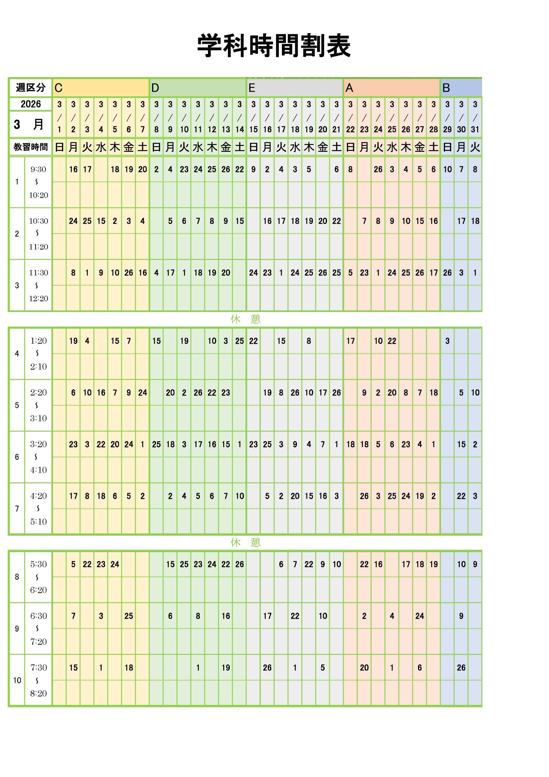 ※仮・・・・仮免学科試験(祝日は行いません。)